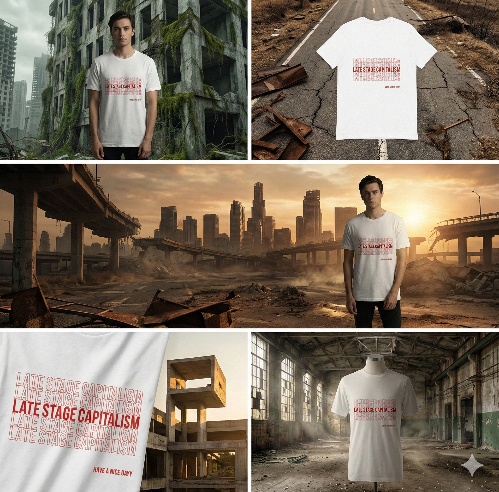 Late stage capitalism” is a cultural phrase often used to highlight economic irony and modern consumer contradictions. Our designs reference the idea in a subtle, minimalist way rather than making loud statements.